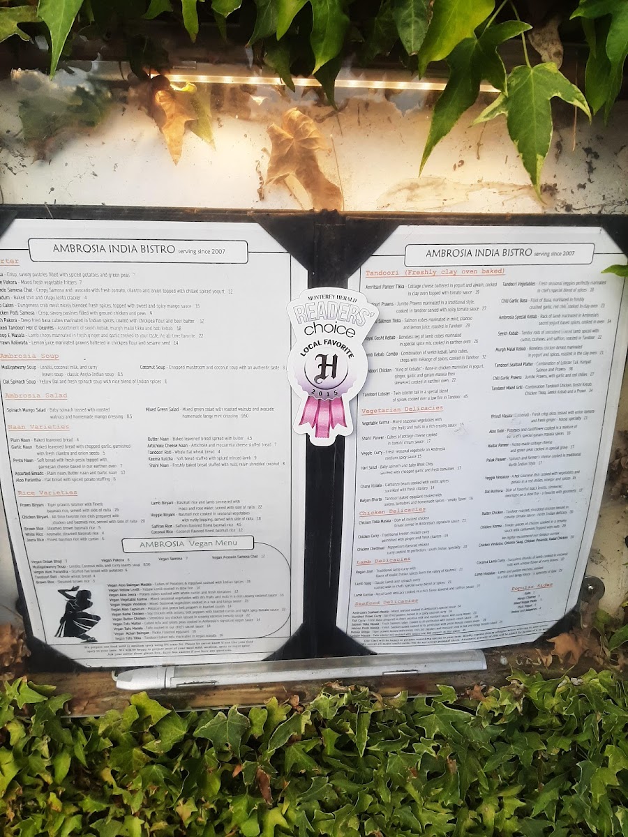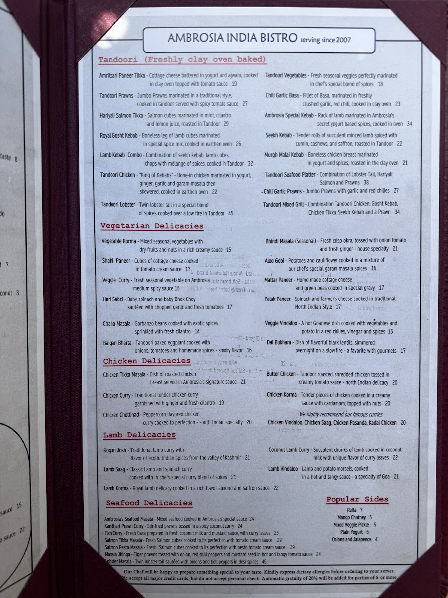 Dish of roasted chicken breast served in Ambrosia’s signature sauce.
